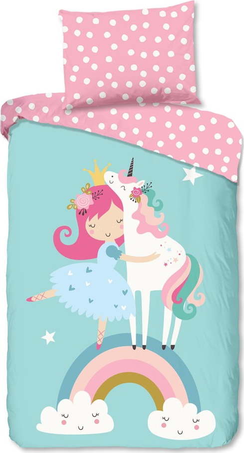 Modré/růžové bavlněné dětské povlečení na jednolůžko 140×200 cm Heaven – Good Morning