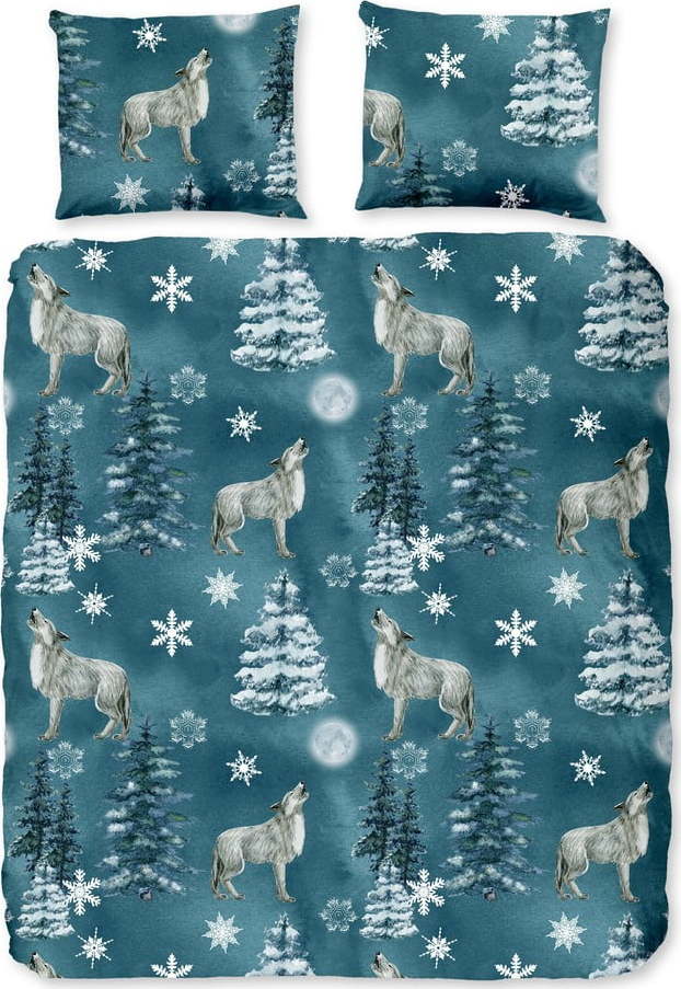 Prodloužené flanelové povlečení na dvoulůžko v petrolejové barvě 200×220 cm Midnight – Good Morning