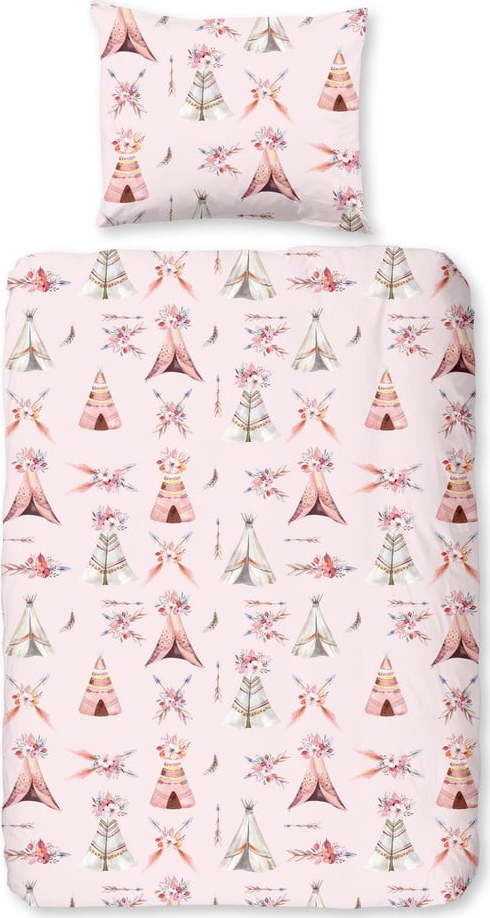 Růžové bavlněné dětské povlečení do postýlky 120×150 cm Boho – Good Morning