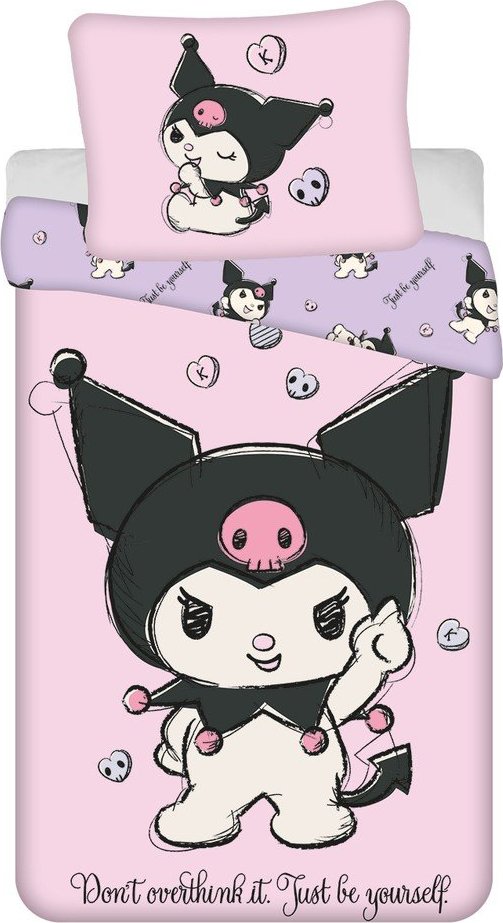 Růžové bavlněné dětské povlečení na jednolůžko 140×200 cm Hello Kitty „Kuromi“ – Jerry Fabrics