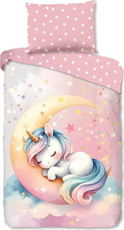 Růžové bavlněné dětské povlečení na jednolůžko 140×200 cm Molly – Good Morning