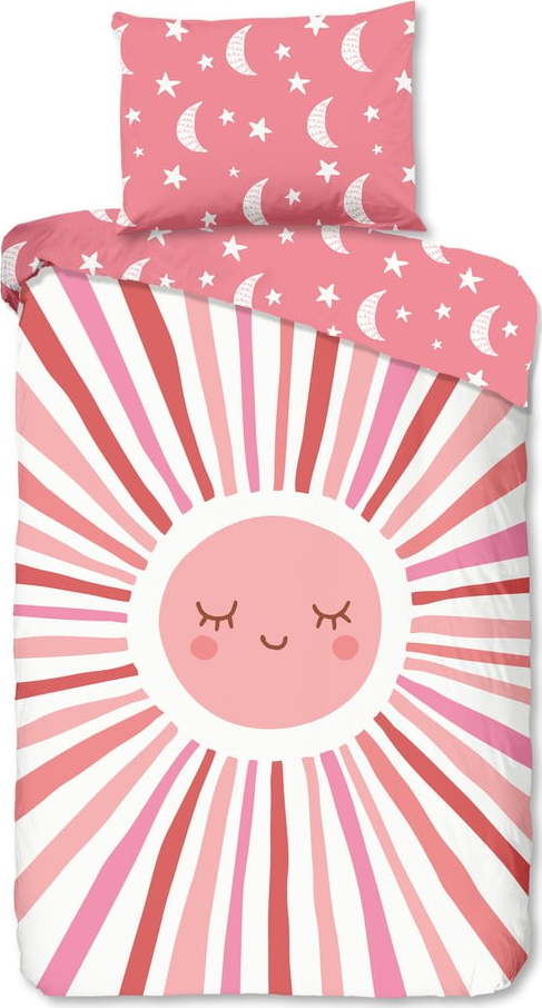 Růžové bavlněné dětské povlečení na jednolůžko 140×200 cm Sunny – Good Morning