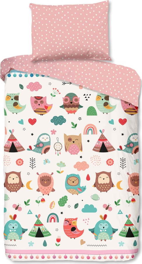 Růžové bavlněné dětské povlečení na jednolůžko 140×200 cm Wise – Good Morning