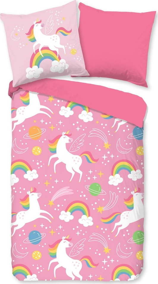 Růžové dětské povlečení na jednolůžko z mikrovlákna 140×200 cm – Good Morning