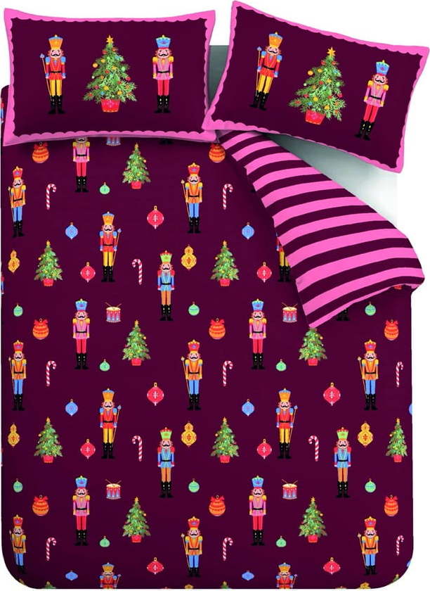 Růžové/fialové povlečení na dvoulůžko/prodloužené 230×220 cm Nutcracker Stripe – Catherine Lansfield