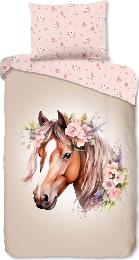 Růžové/hnědé bavlněné dětské povlečení na jednolůžko 140×200 cm Avera – Good Morning