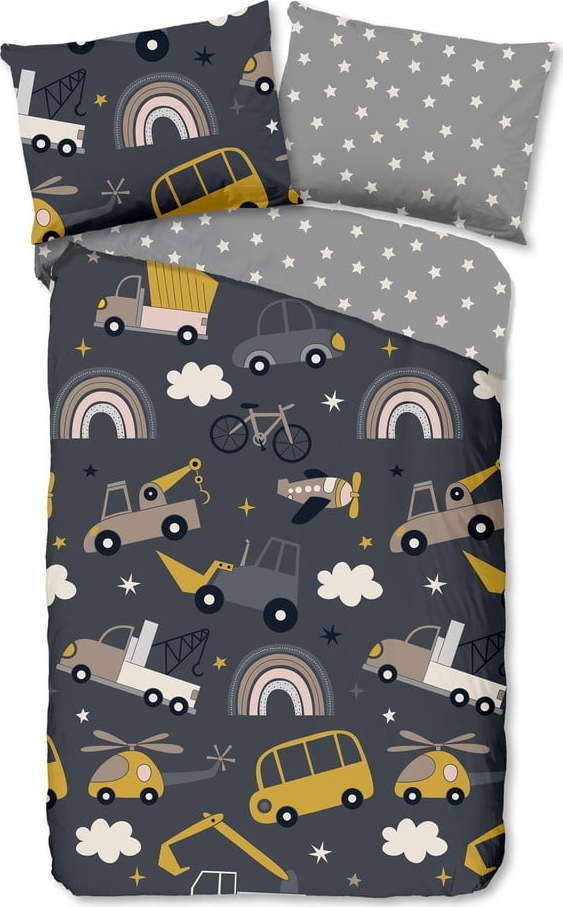 Šedé bavlněné dětské povlečení na jednolůžko 140×200 cm Rush – Good Morning