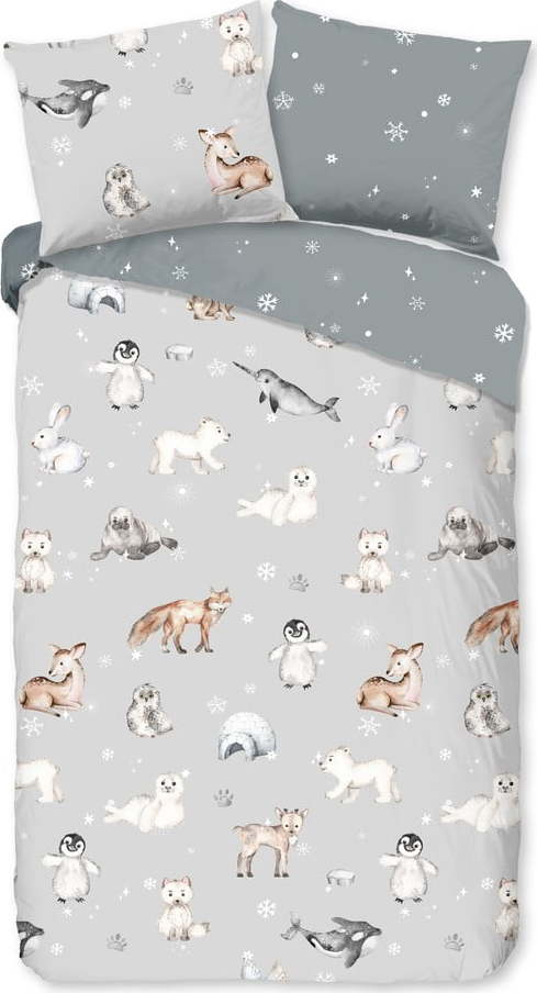 Šedé flanelové dětské povlečení na jednolůžko 140×200 cm Cira – Good Morning