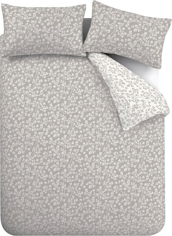 Šedé flanelové povlečení na dvoulůžko/prodloužené 230×220 cm Grace Floral Leaf – Catherine Lansfield