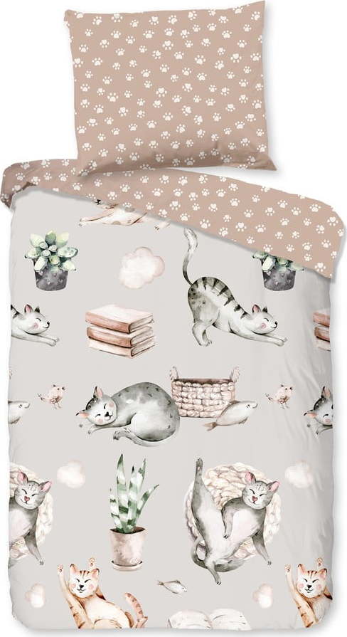 Šedé/hnědé bavlněné dětské povlečení do postýlky 120×150 cm Catlife – Good Morning