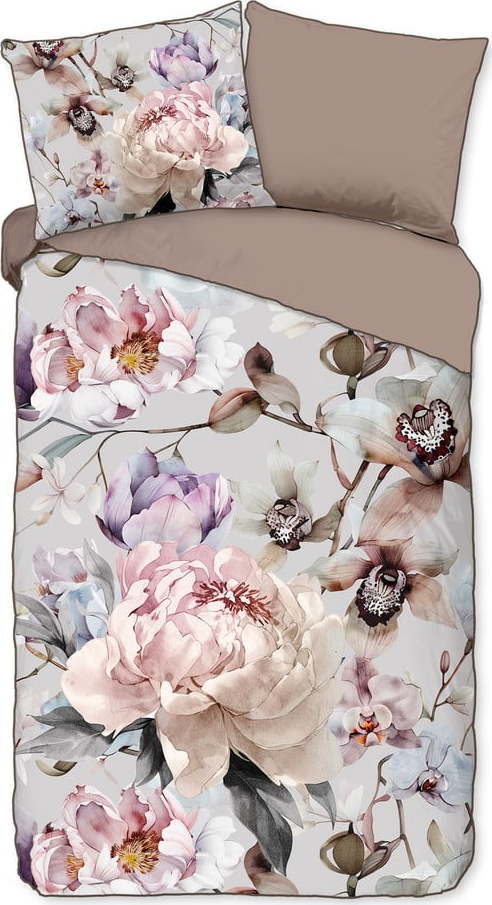 Šedé/hnědé povlečení na jednolůžko/prodloužené z bavlněného saténu 140×220 cm Colinda – Descanso