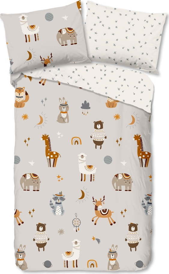 Šedobéžové bavlněné dětské povlečení na jednolůžko 140×200 cm Woody – Good Morning