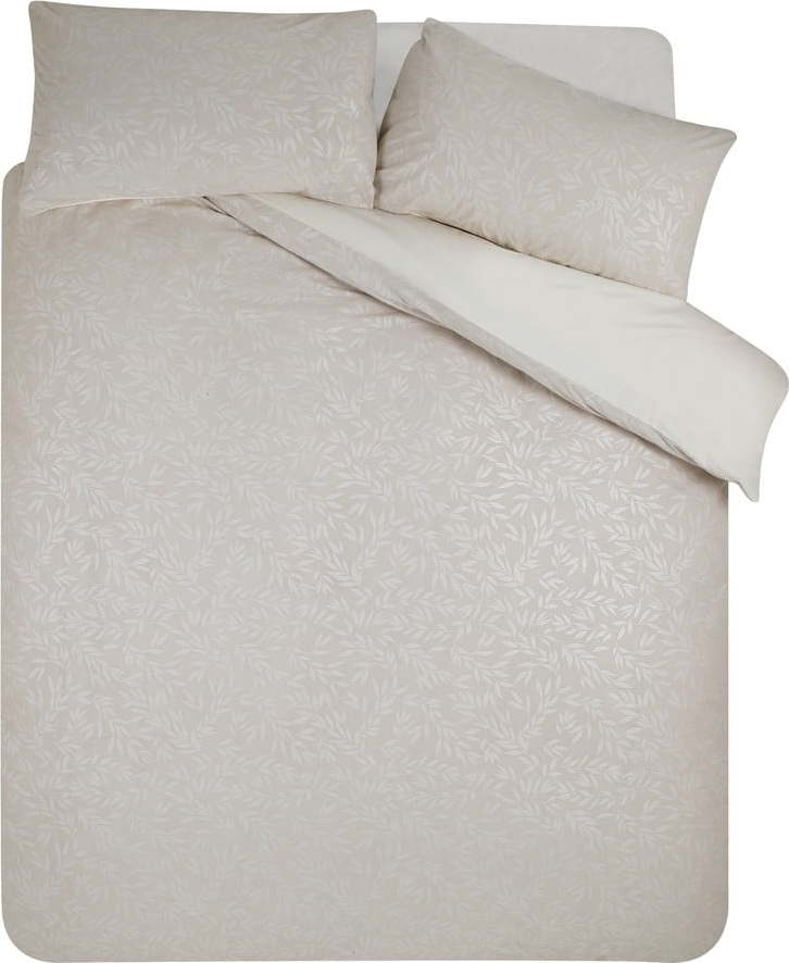 Šedobéžové povlečení na jednolůžko z žakáru 135×200 cm Corded Leaves – Catherine Lansfield