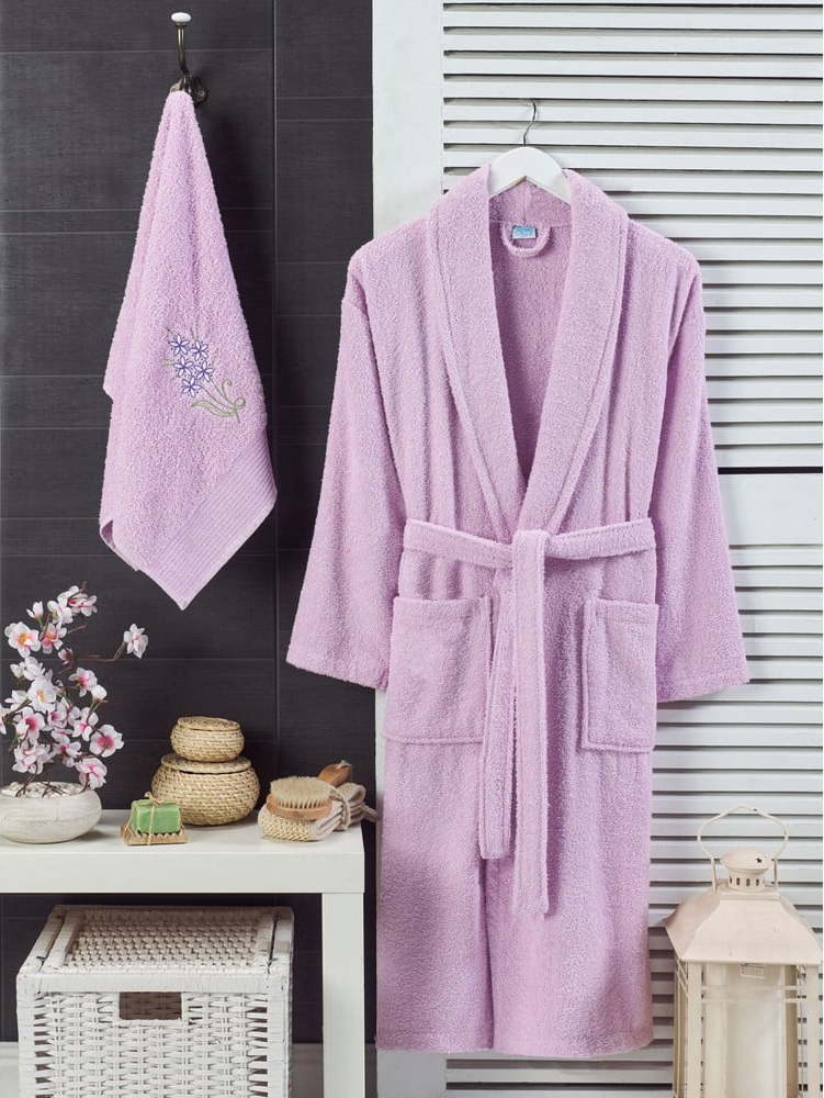 Světle růžový bavlněný župan a ručník v sadě velikost S/M – Mila Home