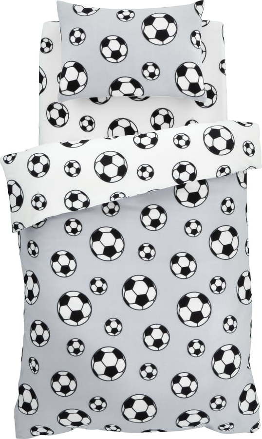 Světle šedé fleecové dětské povlečení na dvoulůžko 200×200 cm Football – Catherine Lansfield
