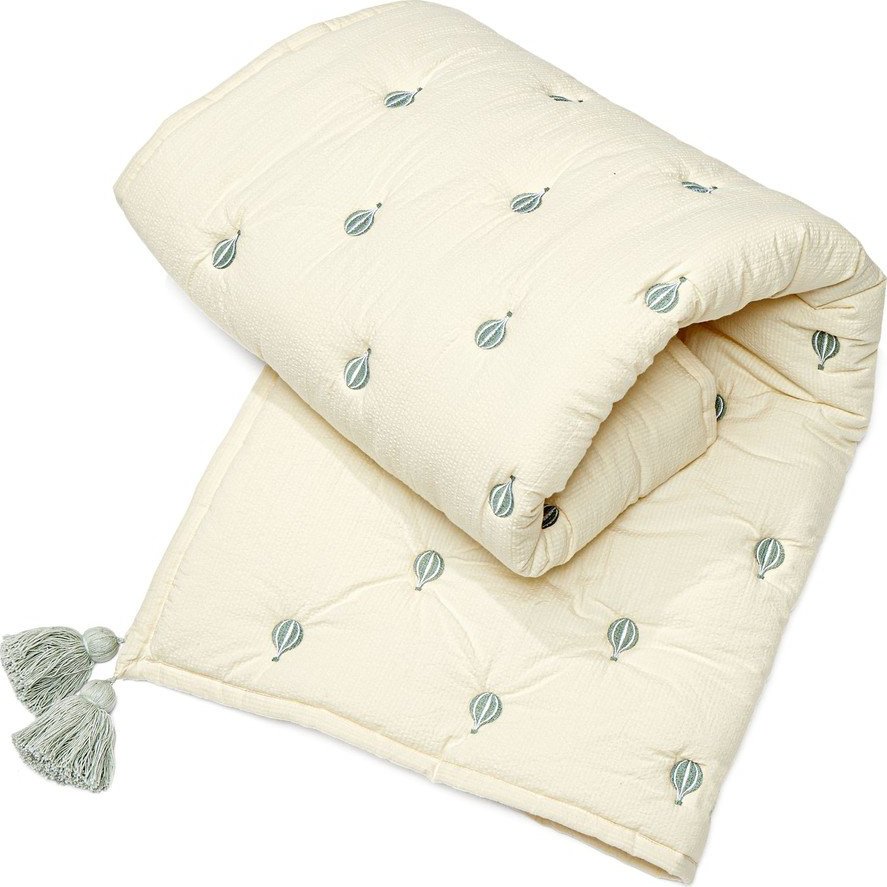 Deka Balloon od značky Cam Cam Copenhagen je nádherný kousek s jemnou výšivkou, která zdobí celou její plochu. Její bavlněná krepová textura je příjemná na dotek a roztomilé motivy horkovzdušných balónů dodávají hravý vzhled.