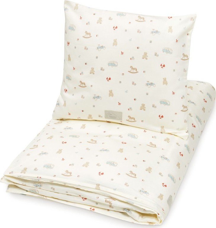 Dětské povlečení Vintage Toys od značky Cam Cam Copenhagen je vyrobeno z měkké organické bavlny v saténové vazbě s certifikací GOTS.