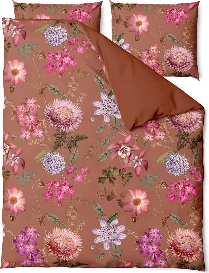 Terakotově hnědé povlečení na dvoulůžko z bavlněného saténu Bonami Selection Blossom, 200 x 220 cm