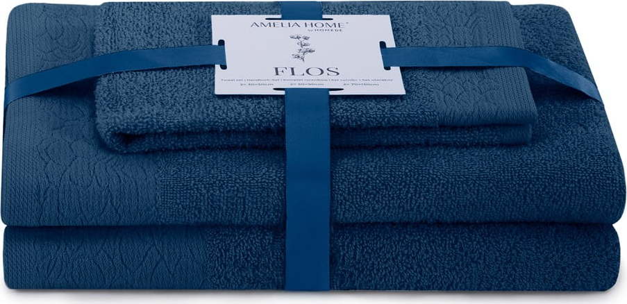 Tmavě modré froté bavlněné ručníky a osušky v sadě 3 ks Flos – Restilo