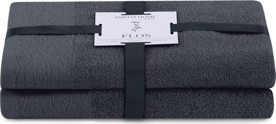 Tmavě šedé froté bavlněné ručníky a osušky v sadě 2 ks Flos – Restilo