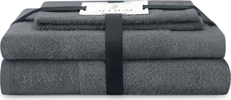 Tmavě šedé froté bavlněné ručníky a osušky v sadě 3 ks Allium – Restilo