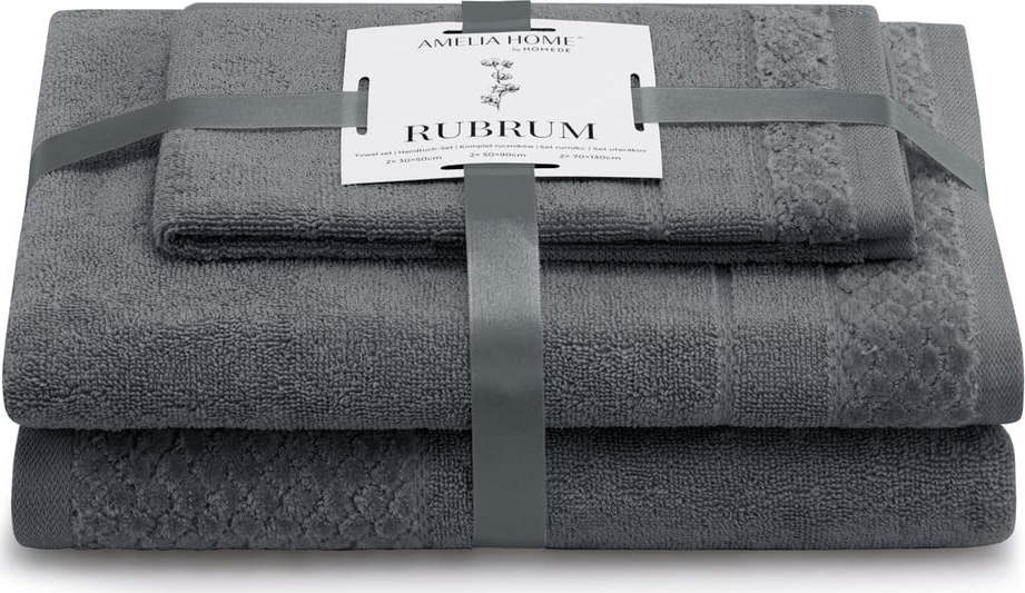Tmavě šedé froté bavlněné ručníky a osušky v sadě 3 ks Rubrum – Restilo