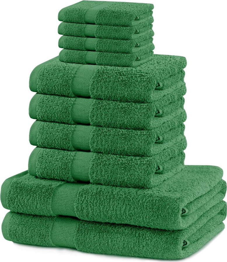 Tmavě zelené froté bavlněné ručníky a osušky v sadě 10 ks Marina – Restilo