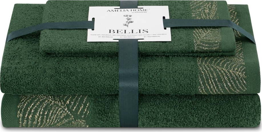 Tmavě zelené froté bavlněné ručníky a osušky v sadě 3 ks Bellis – Restilo
