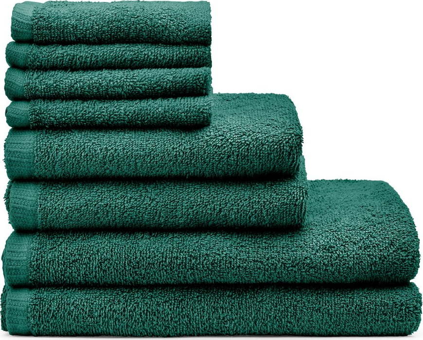 Tmavě zelené rychleschnoucí/froté bavlněné ručníky a osušky v sadě 8 ks Quick Dry – Catherine Lansfield