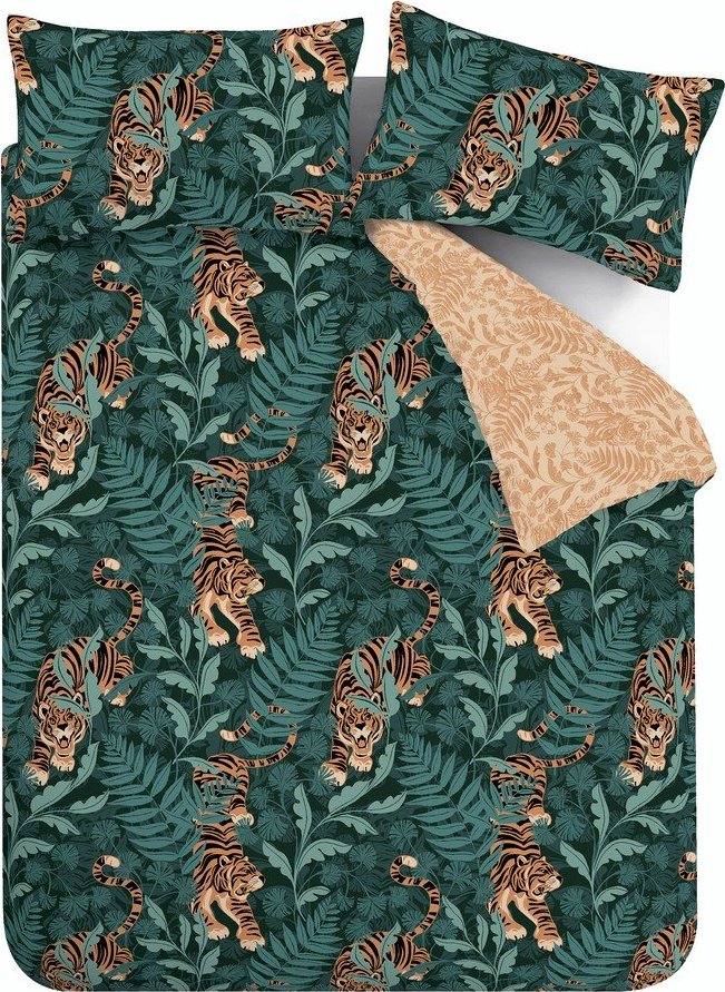 Zelené/hnědé povlečení na dvoulůžko/prodloužené 230×220 cm Tropic Tiger Leaf – Catherine Lansfield