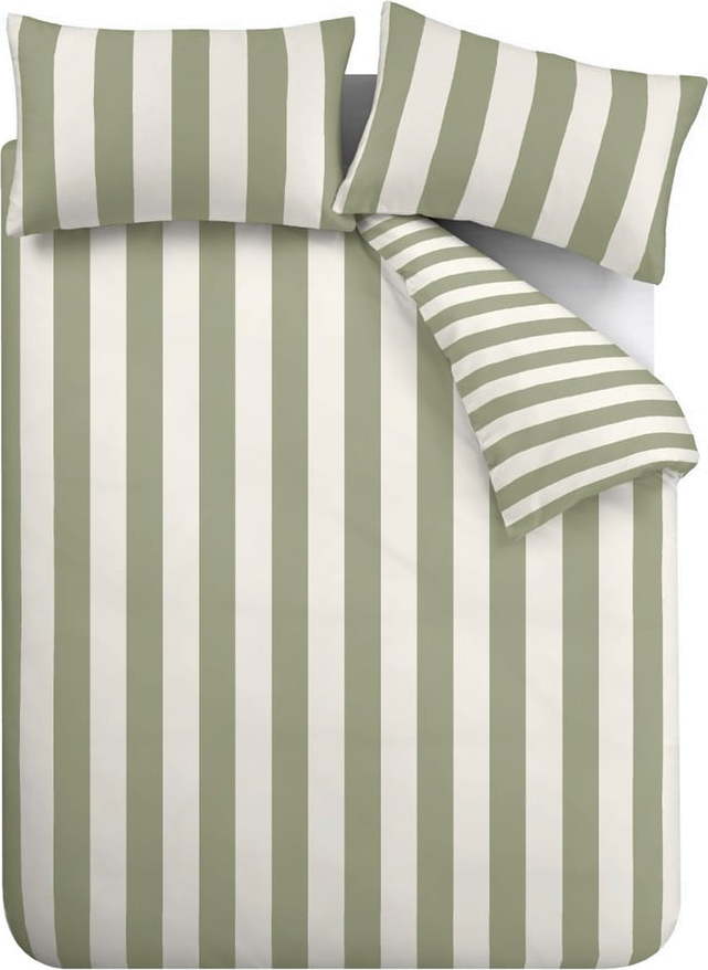 Zeleno-krémové povlečení na jednolůžko 135×200 cm Cove Stripe – Catherine Lansfield