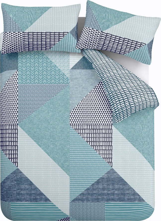 Zelenomodré povlečení na dvoulůžko/prodloužené 230×220 cm Larsson Geo – Catherine Lansfield
