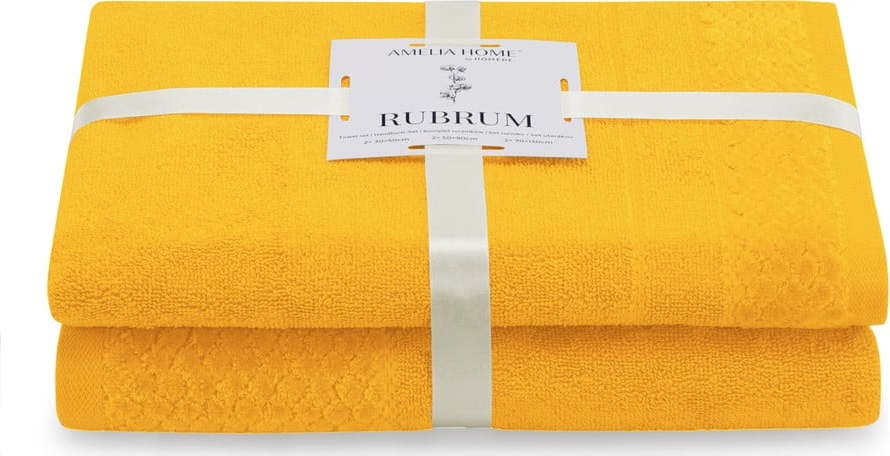 Žluté froté bavlněné ručníky a osušky v sadě 2 ks Rubrum – Restilo