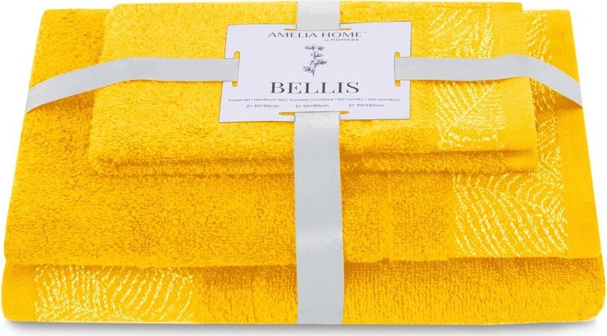 Žluté froté bavlněné ručníky a osušky v sadě 3 ks Bellis – Restilo