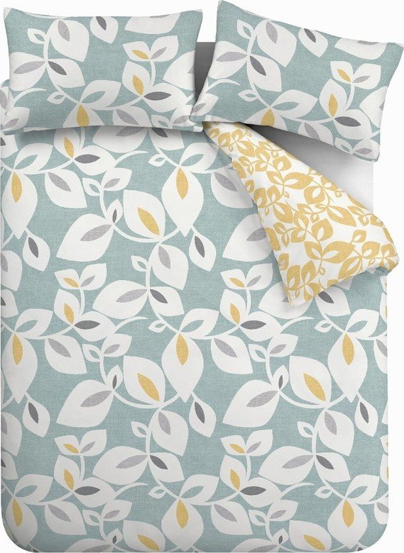 Žluté/modré povlečení na dvoulůžko/prodloužené 230×220 cm Inga Leaf – Catherine Lansfield