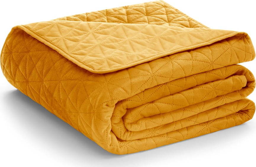 Žlutý sametový prošívaný přehoz 220×240 cm Laila – Restilo