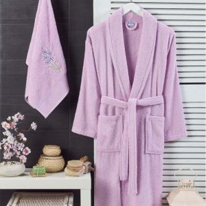 Světle růžový bavlněný župan a ručník v sadě velikost S/M – Mila Home